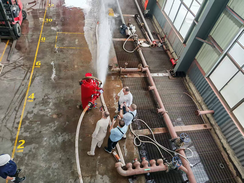 Op 8 en 9 oktober bezocht een delegatie Russische klanten en brandweerleiders ons bedrijf voor een fabrieksaudit. Tijdens het bezoek voerden ze rigoureuze tests uit op de belangrijkste prestatiegegevens van producten zoals de auto-tracking monitor, schuiminductor en schuimtank, inclusief stroomsnelheid, bereik, blussnelheid en nauwkeurigheid van de mengverhouding. Dankzij de gezamenlijke inspanningen van ons hele team heeft alle relevante technische documentatie de audit met succes doorstaan. We zijn ervan overtuigd dat het verkrijgen van de Russische GOST-certificering op handen is.